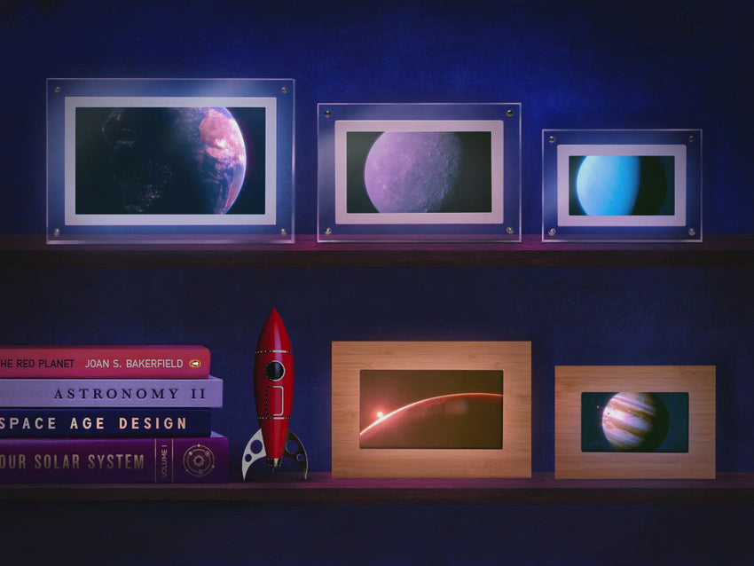 A retro-futuristic tour through the celestial bodies of our solar system and wider galaxy.
